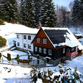 Na okraji obce Desná v Jizerských horách nabízíme k prodeji udržovaný objekt o zastavěné ploše 220 m, kde je možné vybudovat 3 velké byty. Dosud byl dům provozován jako penzion s privátní bytovou jednotkou, ale nabízí se i krátkodobé ubytování celé nemovitosti, či podnikání spojené s turismem. Celková plocha pozemku činí 1 764 m. Nemovitost se skládá z původního domu se sedlovou střechou a novějš